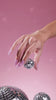 - Appliquez le Top Coat Perfect Powder sur la totalité de l’ongle et déposer les petits strass avec un dotting tool par exemple. Cataylsez 30 secondes.